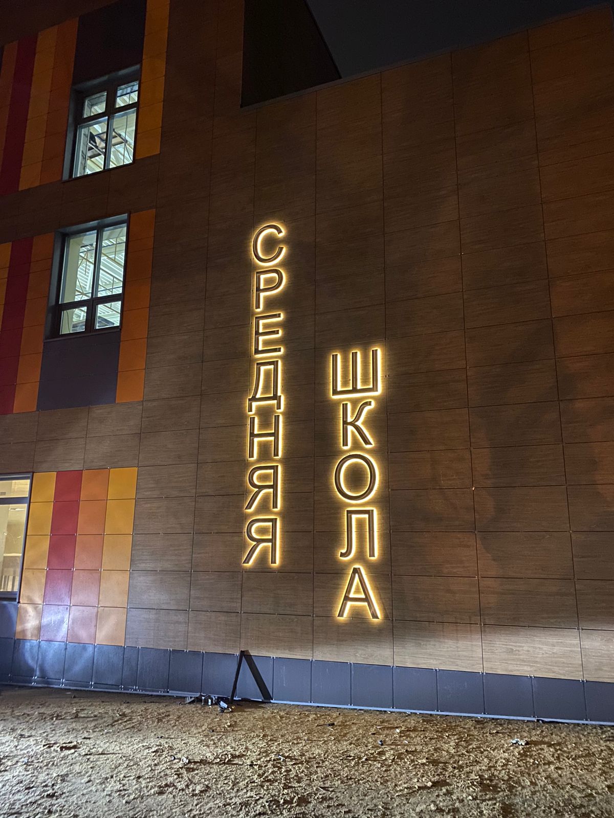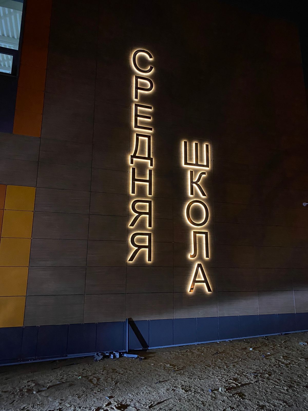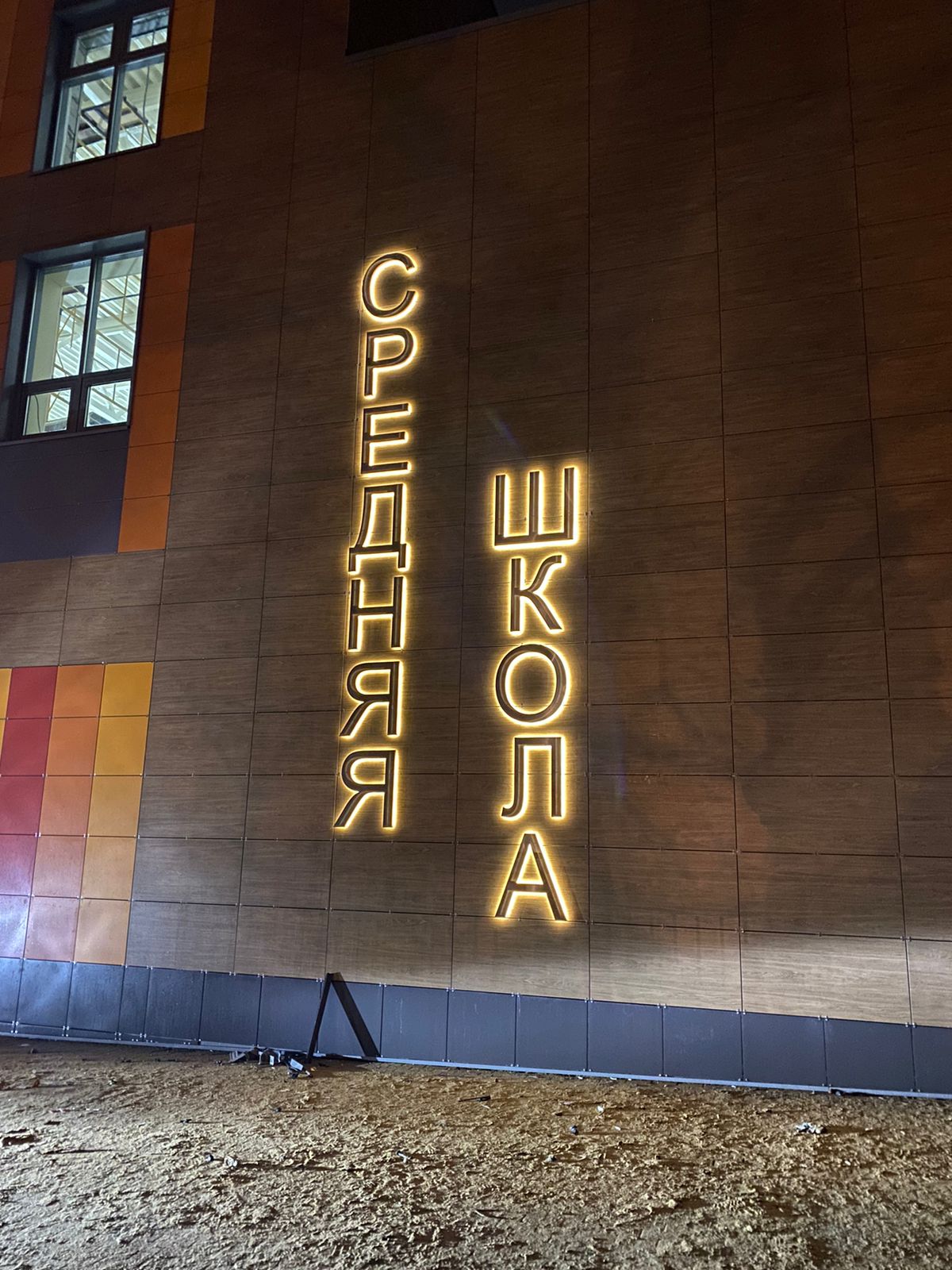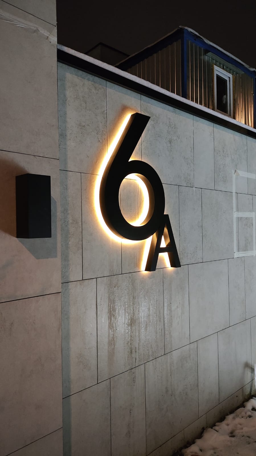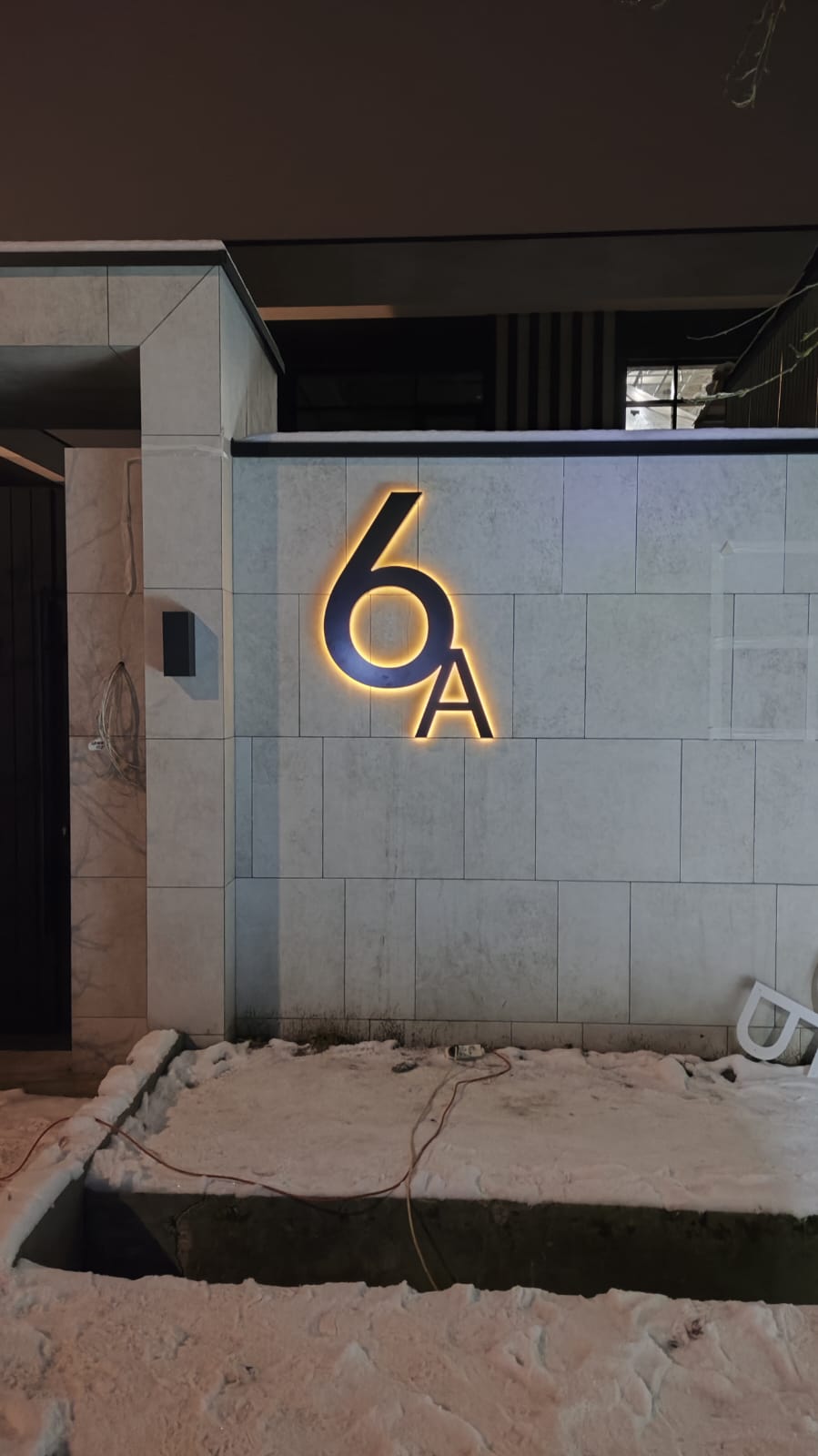 Монтаж букв с контражуром отличается сложностью, так как провода для питания диодов нужно подвести к каждому световому элементу со стороны стены. Заказчик получает трафареты букв, где отмечают места для вывода проводов, и после этого строители штробят стену.