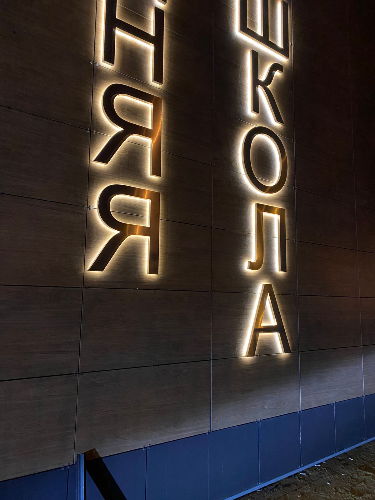 Контражурная подсветка создаёт светящийся ореол вокруг букв. Это делает их особенно заметными в темное время суток. При этом свет равномерно распределяется, не давая резких теней и бликов.