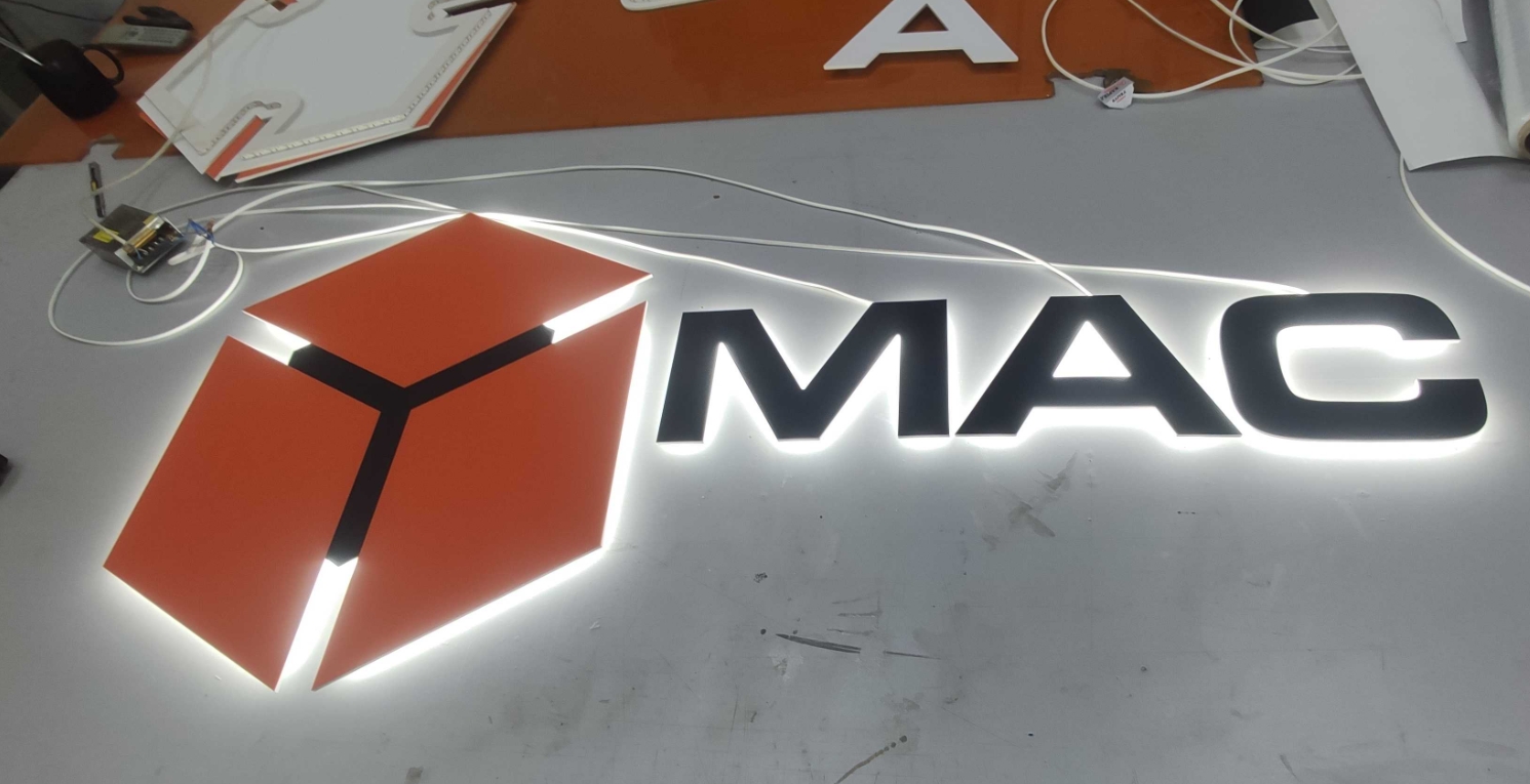 Организацию подсветки осуществляют с помощью светодиодных модулей, дающих равномерное свечение и энергоэффективность. LED-модули монтируют в зазор между буквой и стеной, создавая эффект «парящего» знака. Толщина материала плоских букв составляет от 2 до 20 мм и выбирается по размерам конструкции.