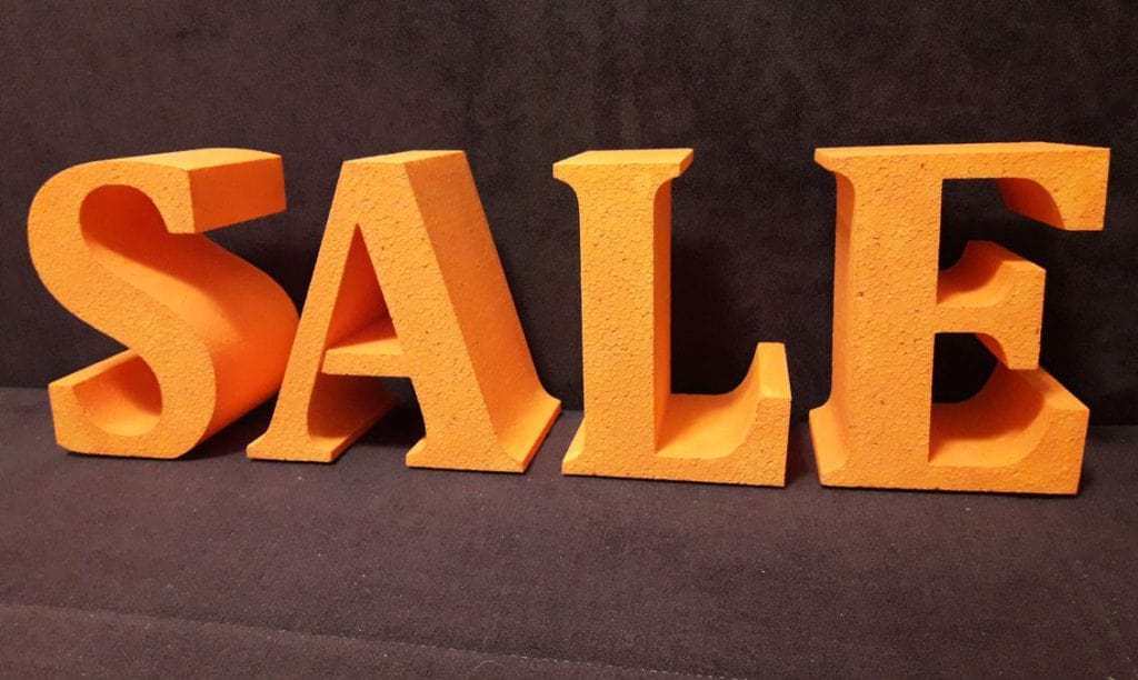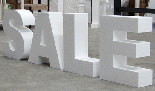 Заказчик — магазин обуви— обратились к нам для изготовления объемных букв из пенопласта, которые бы информировали клиентов о скидках. Основные требования при исполнении заказа: