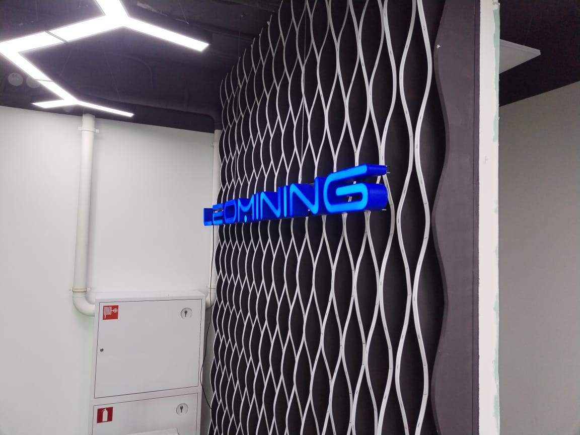 Для подсветки использовали светодиодную ленту нейтрального белого света 5000 К. Ленту закрепили на внутреннюю часть задней панели буквы, а стыки для защиты от влаги залили жидким пластиком Cosmofen. Блок питания с уровней защиты IP67 спрятали в антивандальный короб за вывеской.