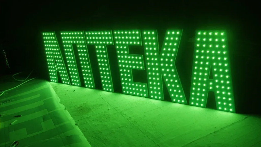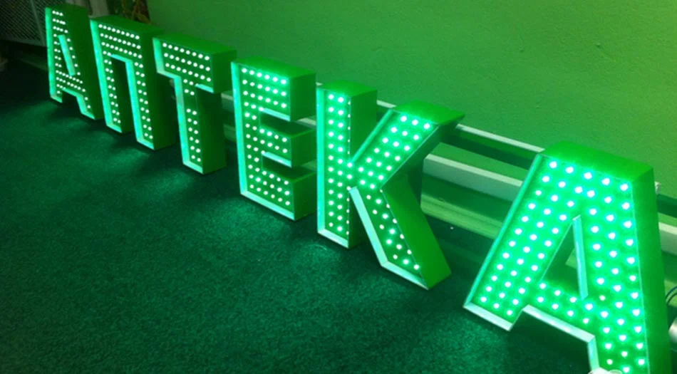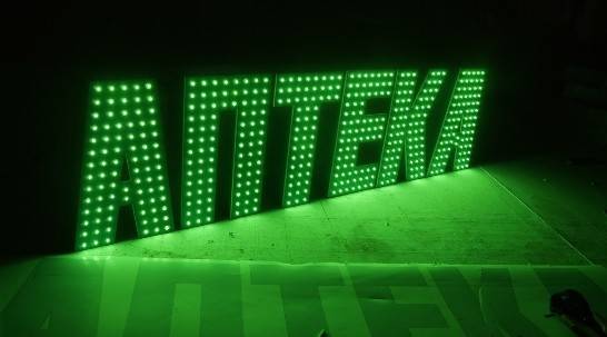 Светодиодные led буквы с открытыми пикселями изготовлены за 12 дней и установлен за 6,5 часов. Работает 10 месяцев исправно. Светодиодные led буквы с открытыми пикселями без повреждений.