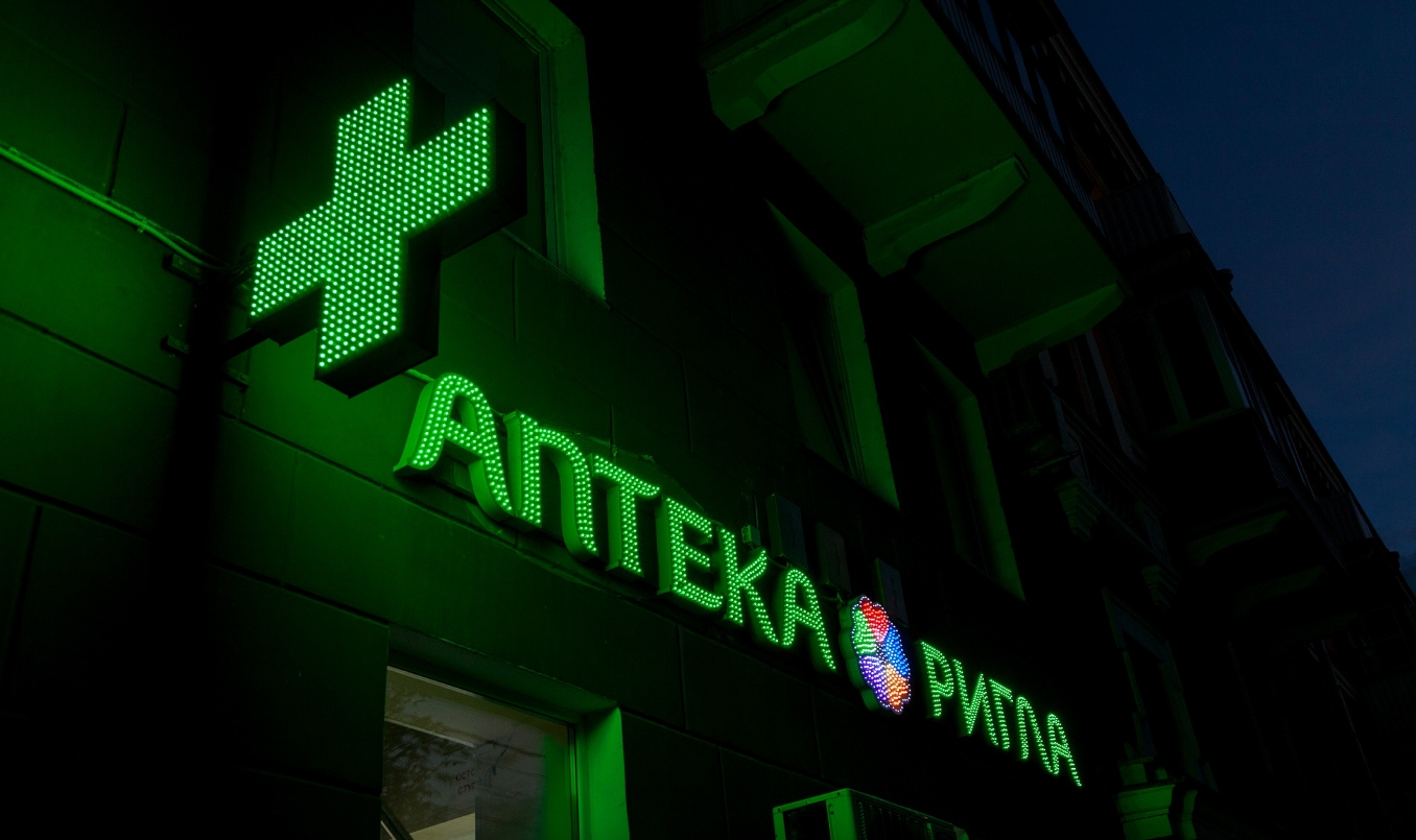 Вывеска ярко светится в тёмное время суток, оставаясь читаемой и днём. Благодаря открытым пикселям создаётся чёткое и привлекательное свечение.