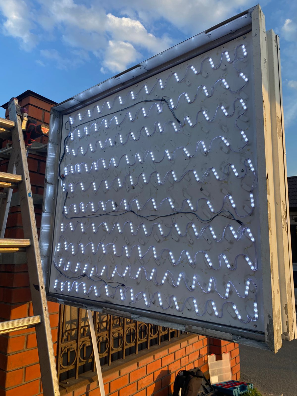 Короб с баннерной тканью освещается LED-лампами, вмонтированными в задник конструкции, как и во многих других видах световых рекламных вывесок. Но есть моменты, которые делают баннерные конструкции особенными.