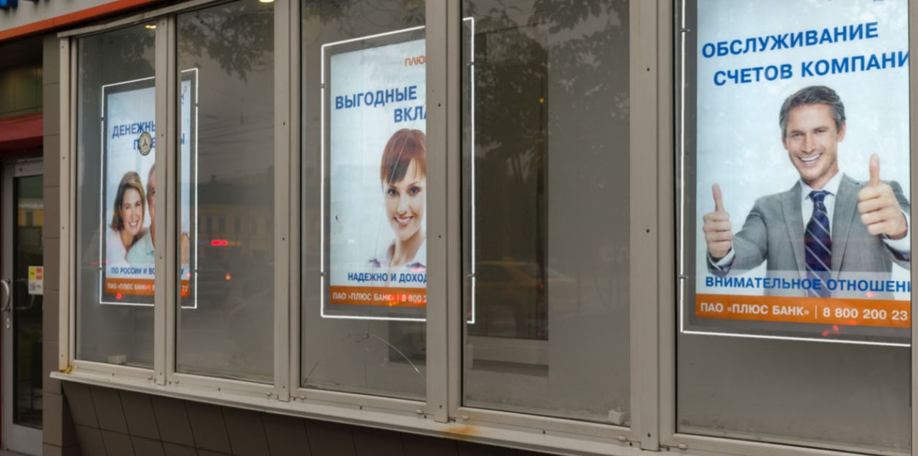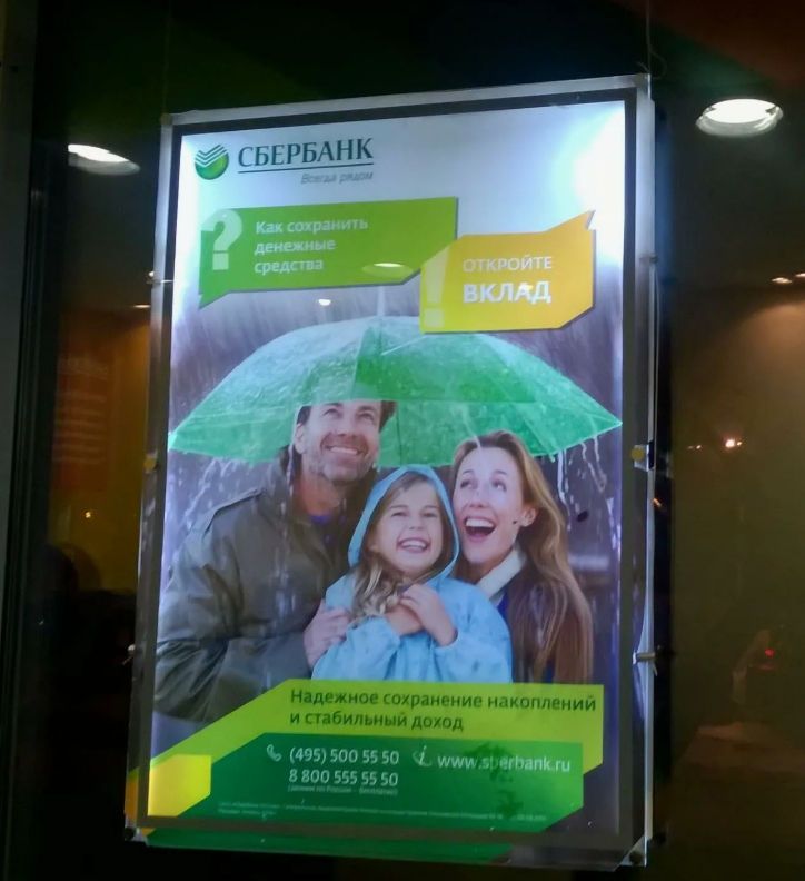 В отделениях банков crystalight часто устанавливают в оконных проемах, чтобы привлекать внимание клиентов к спецпредложениям по кредитам, вкладам или картам. Из-за равномерной подсветки и высокой четкости изображения информация легко читается даже с большого расстояния.