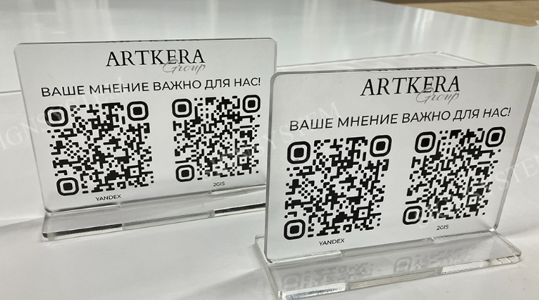 Акрил — легкий, прозрачный или цветной пластик, устойчивый к влаге, ультрафиолету и механическим повреждениям. Он хорошо передает цвета, не выгорает на солнце и выглядит современно.