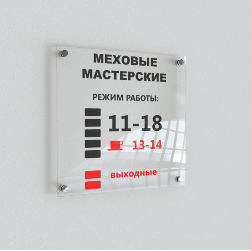 Если у вас нет готового макета, дизайнеры создадут эскиз, визуализируют его и подготовят к печати на акриле с учетом технического задания.