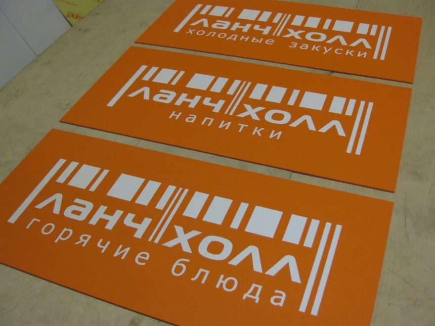| Печать на пластике 5 мм «под ключ» | от 6 750 ₽ | от 4 950 ₽ | от 4 140 ₽ | Цена включает материал (ПВХ 5 мм) и полноцветная печать. |