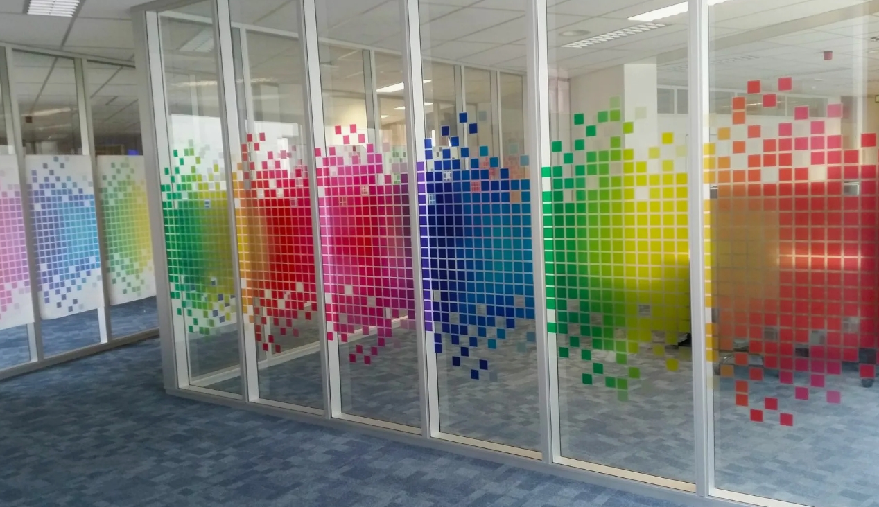 Крепится к стеклу за счет статического электричества. Не оставляет следов, подходит для многократного использования. Идеальна для витрин и офисных перегородок.