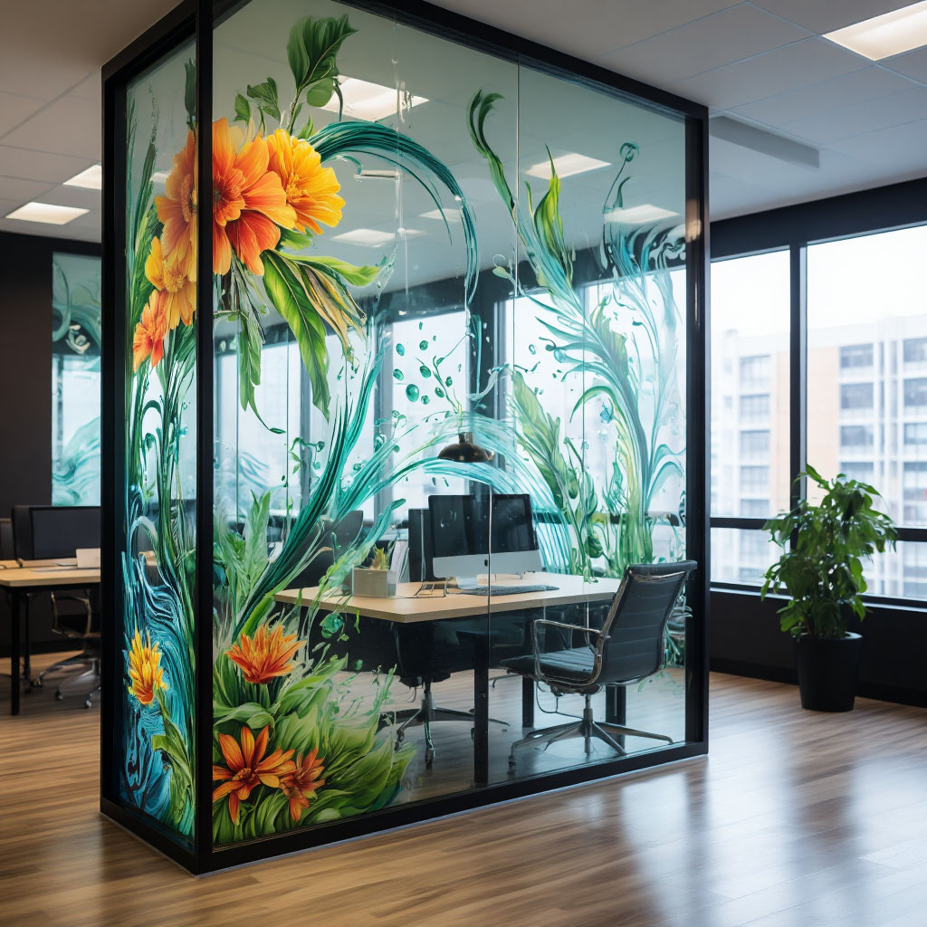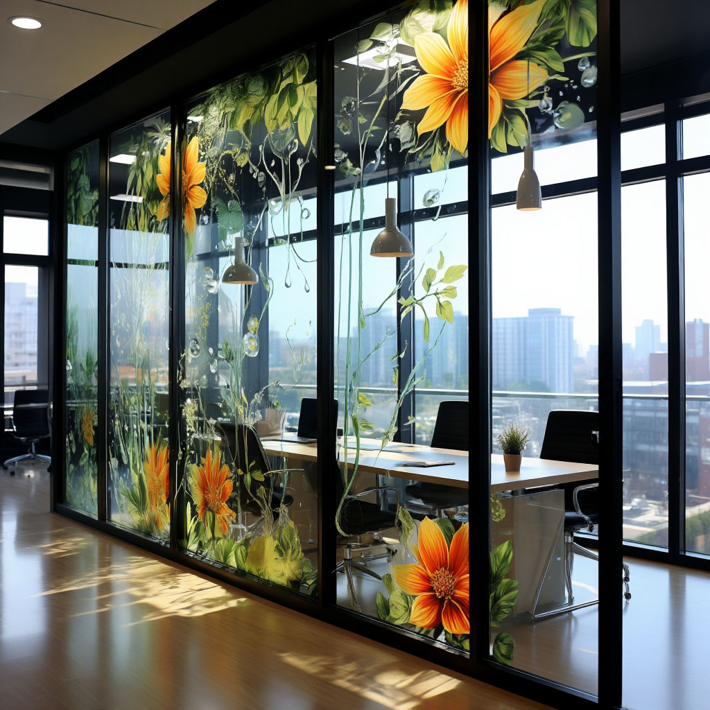 Каждый проект мы разрабатываем индивидуально, учитывая особенности вашего бренда и архитектурные нюансы помещения. Применяемые нами экологичные УФ-чернила премиум-класса устойчивы к выцветанию, воздействию влаги и перепадам температур. Изображение долго сохраняет насыщенность цветов и четкость деталей. Мы печатаем с белой подложкой для максимальной яркости или без нее для более деликатного оформления.